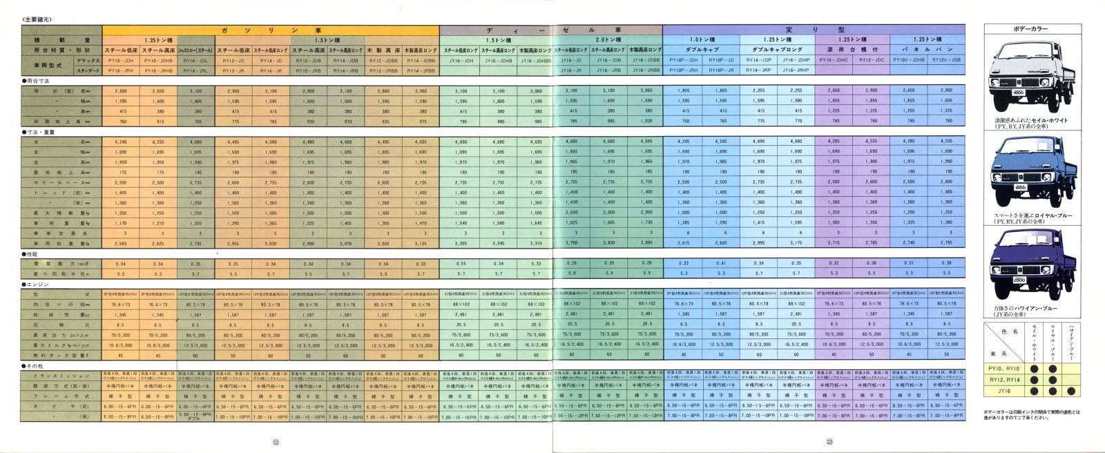 思い切った低価格戦略で三輪トラックを駆逐し、「トラックの国民車」という地位を確固たるものにしたトヨエースは、2代目の時点で1.5トン積みまで揃えたワイドレンジ展開をしており、小型トラックユーザーから絶大な人気を得ていました。