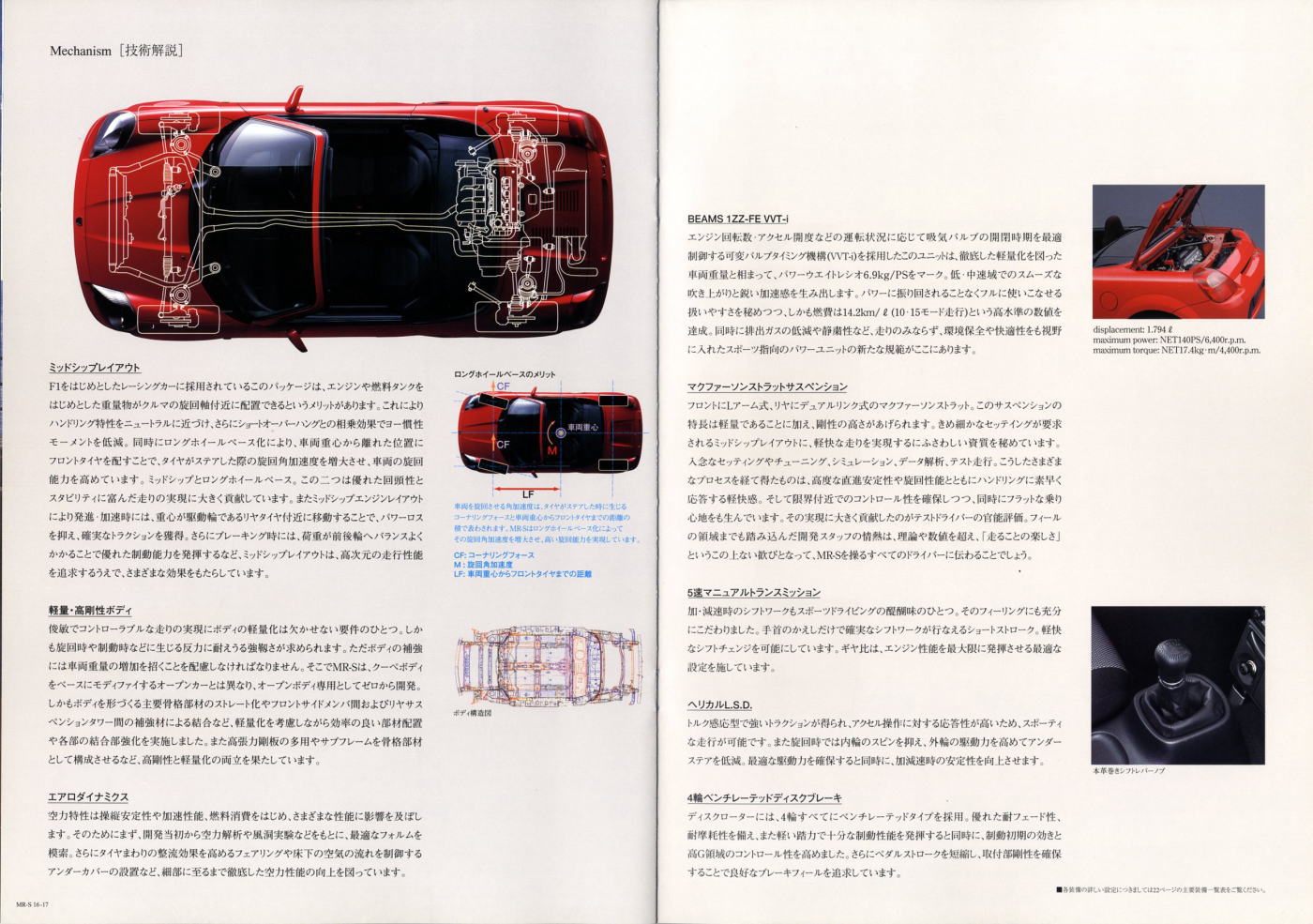さて、このMR-S、発売当時、ネッツ店で行われていた“有料試乗”なるものを利用し、営業マンの同乗なしで遊んだ記憶があります。10年以上前のことなので細かなことは忘れてしまいましたが、確か5〜600円の料金で、30分か1時間(ちょっと記憶が曖昧です)自分の好きなコースを走ってよいという制度だったと思います。ごく短時間のレンタカーのような感じですね。なかなかよい制度だったんですが、今でもやっているんでしょうかね?なにぶんこの制度を利用したのはMR-Sが最初で最後、理由は単純明快、このMR-S以降、お金を払ってまでじっくり乗ってみたいと思ったトヨタ車がなかったからですけどね。
